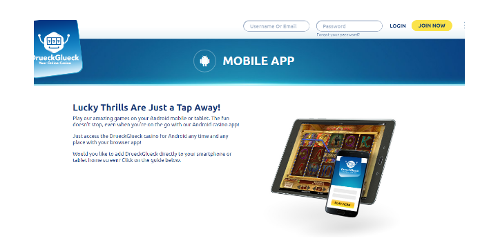 Playing on desktop is not possible all the time. Sometimes it is necessary to play on mobile devices because of the different circumstances. Drueckglueck also provides you such opportunity in order to give you a chance to enjoy the gambling anywhere you want. Gaming on the mobile device is also possible if you have Android or iOS software.